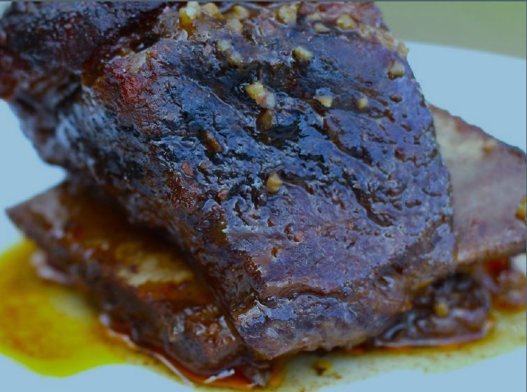 - Sæt blandede salat på serverings pladerne sammen med 1-2 "short ribs".