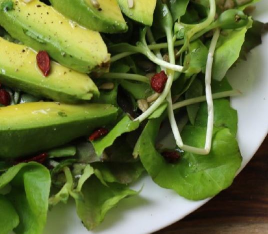 - Tilføj skiver på toppen af salaten og dryp med Koriander Lime Dressing.