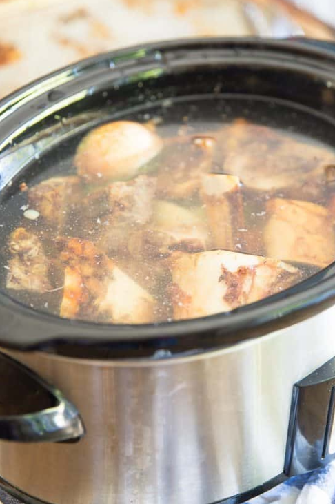 - Fjern ribbenene fra stegepanden og føj den til slow cooker.