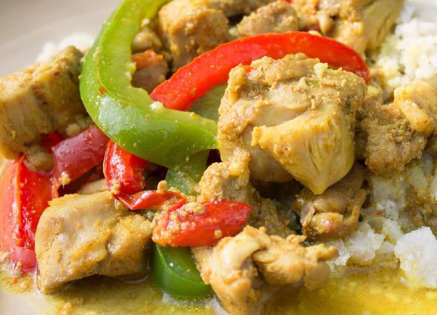 - Server kylling med en blomkål stegte ris.
