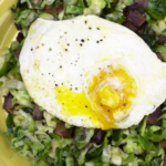 Placer kålmix på en tallerken, og kom to æg oven på hver portion sammen med lidt af resterende smør.