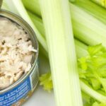 Kom tunfisk ind i selleristilke og server med et krus af varm buljong.